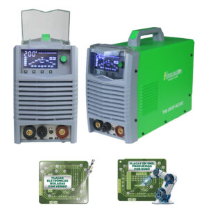 - Máquina Fabricada na China Salva até 10 programas na memória; Placas produzidas por robô, em SMD; TIG DC com abertura de arco por HF (alta frequência) e eletrodo revestido (MMA); Regulagens totalmente digitais; Função 2T/4T toques do gatilho; Rampa de subida e descida (de 0 a 10s); Pré (0 a 2s) e pós (0 a 10s) vazão de gás; Corrente inicial e final de soldagem; Arco pulsado com ajuste de frequência (de 0,1 até 200 Hz), altura e largura de pulso; Ajuste fino da corrente; Amperímetro digital; Sensor térmico (proteção contra superaquecimento).