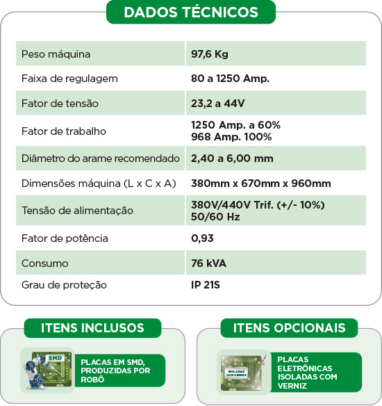 • Soldagem pelo processo arco submerso (SAW) com fonte de energia com tecnologia inversora