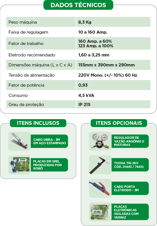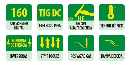 TIG DC com abertura de arco por HF (alta frequência) e eletrodo revestido (MMA);