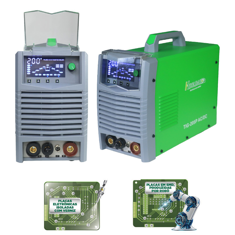 • TIG AC e DC com abertura de arco por HF (alta frequência) ou eletrodo revestido (MMA)